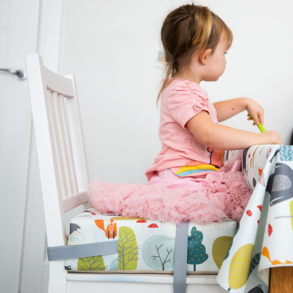 The range of Celina Digby children’s designer water and stain resistant booster seats are made to allow your small children and toddlers (2 years +) to sit at the dining table on a standard dining chair, with no worries about the cushion falling off the seat!