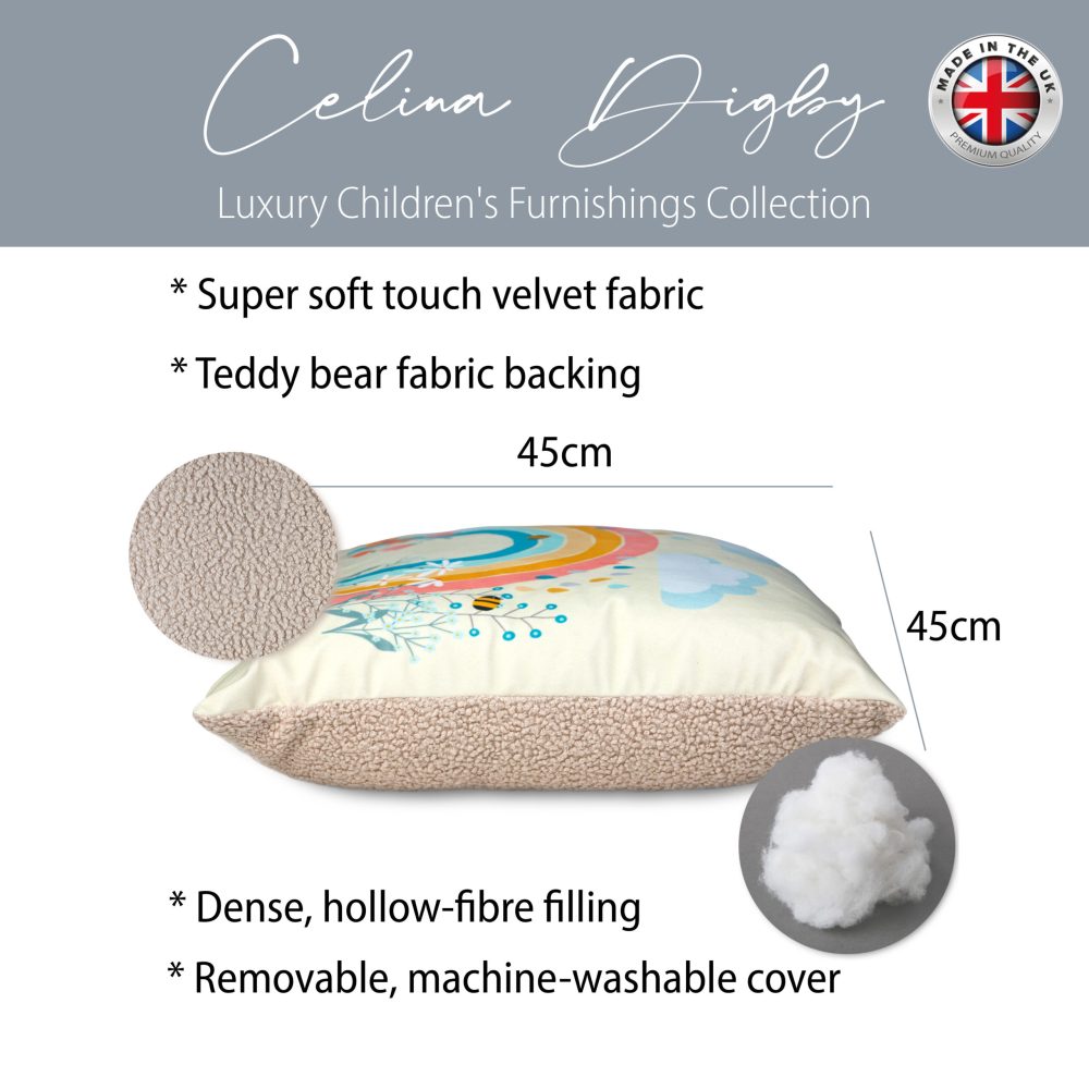 Celina Digby Designer Children’s Luxury Velvet Cushions with Soft Teddy Backing.