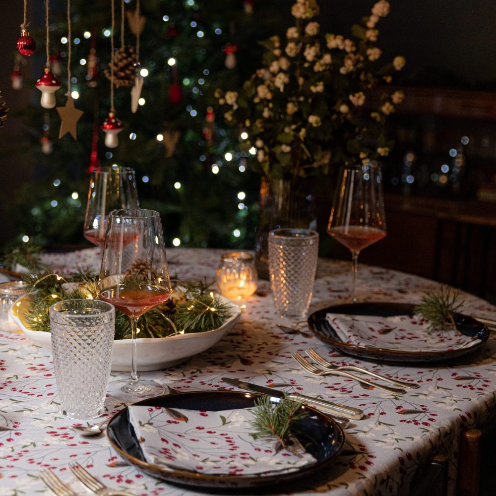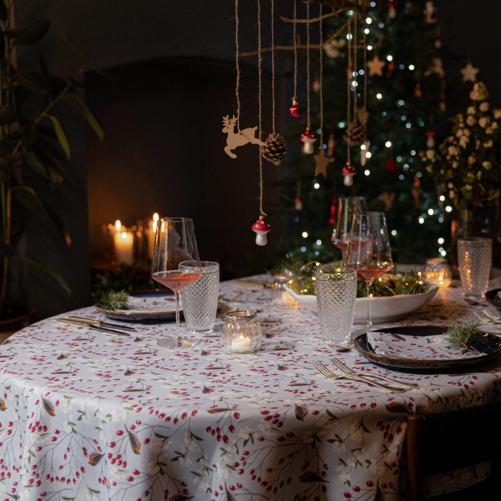Celina Digby luxury festive Christmas tablecloth, made from eco-friendly recycled fabric with a luxurious heavy linen-like feel.