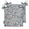 Set of 2 Water Resistant Garden Seat Pads – Orchard Blossom Duck Egg – Sparrow Birds & Floral Design (Available in 3 Sizes)