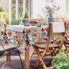 Perfect for outdoors throughout the Summer, as well as conservatories and kitchen tables all year around, our tablecloths are made from high quality waterproof fabric, and not PVC. This gives a softer, more natural feel, and allows it to drop away much more smoothly at the edges of the table. They are fully hemmed on all four edges and come in 7 different sizes.